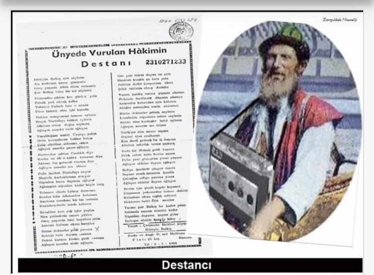 Elinde renkli kağıtlarla gelen bu tiyatral ses tonuyla bağıran ‘destancı’dan başkası olamaz! Televizyon yok, radyo yok destancıdan al haberi! Gazetelerden bile fazla satıyormuş bazı destanlar o dönemlerde. Tüm içtenliğiyle ballandırarak kimi zaman gerçek, kimi zaman da hayal ürünü kurgu hikayeleri hem anlatıp hem 10-15 kuruşa satan bu esnaf özellikle köy halkının göz bebeğiymiş. Örnek mi istersiniz; “Bafra’da anasını keserken taş olan delikanlının destanı”, “ Allı gelinin ve yeni güveyin destanı” konu çok!