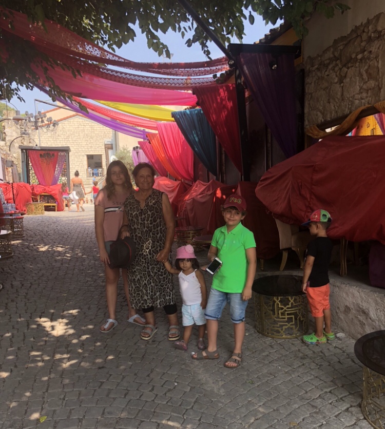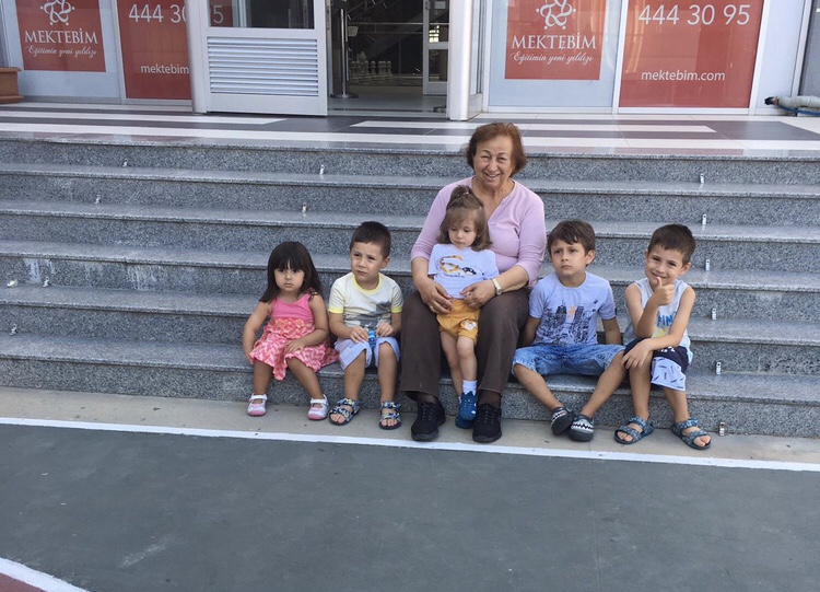 Annem ve dört torunu ( üç poz veren ve bir veremeyen :))