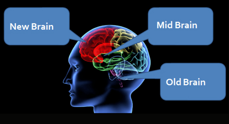 İnsan beyni esasında üç farklı beyinden oluşuyor. Batılı kaynaklarda old brain, mid brain ve new brain şeklinde olup bizde henüz tam da türkçeleşmemiş (eski beyin, orta beyin, yeni beyin şeklinde kullanımları herhangi bir kaynakta göremedim) olan bu ayrıma göre: