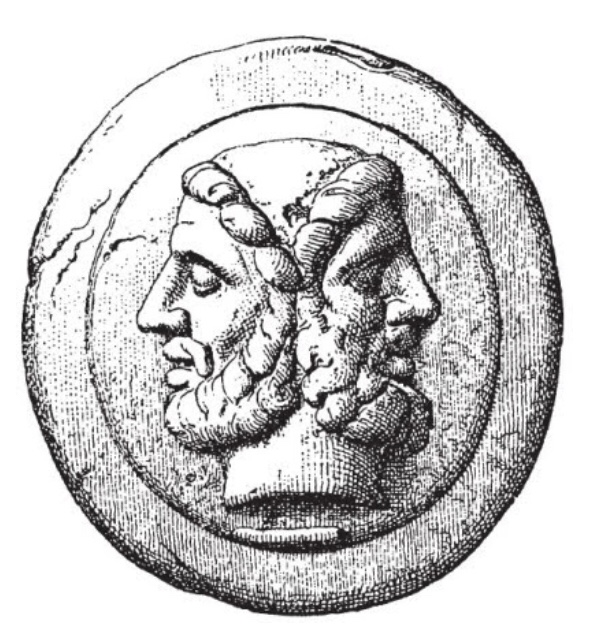 Janus, bir yüzü sağa, bir yüzü sola bakan Roma tanrısıdır. Janus’un bu çift yöne bakma durumu beraberinde metaforik pek çok ögenin ortaya çıkmasına neden oluyor. Mesela İngilizcedeki Ocak ayının karşılığı olan January, Janus’tan türemiş olup Janus’a ait anlamına gelir. Çünkü Ocak ayı tıpkı fotoğraftaki Janus gibi bir yönüyle geçmiş yıla, bir yönüyle de gelecek/yeni yıla bakmaktadır. Yani Janus, geçmiş-gelecek, doğu-batı, soyut-somut bütün zıtlıkları bünyesinde barındırır. Bu yüzden de “Janus word” dediğimiz kelimeler bu karşıtlığı belirtir. İngilizcede bu şekilde birçok kelime var: Apology (özür dilemek – savunmak), Sanction (ilk anlamı yasal olarak onaylamak, diğer anlamı cezalandırmak), Humiliation “aşağılama” anlamına gelirken aynı kökten türeyen humility “tevazu” anlamına gelir v.s. Türkçede de benzer örnekler var, yukarda söylediğim “çekmek” gibi. Bir başka örnek “bitmek”. İlk anlamı “tükenmek/sonlanmak”ken, bir başka anlamı “bitki, saç gibi şeylerin ortaya çıkması”dır. Hatta “bitki”nin “bitmek”ten türediğini ve aslında olgunluğa işaret ettiğini hesaba katarsak “bitmek” kelimesinin bir anlamda “doğum”, “olgunluk” ve “ölüm”ü temsil ettiğini kabul edebiliriz.